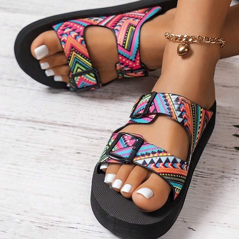 Buckle Ankle Strap Casual Color Block Design Thick Sole Sandals for Women